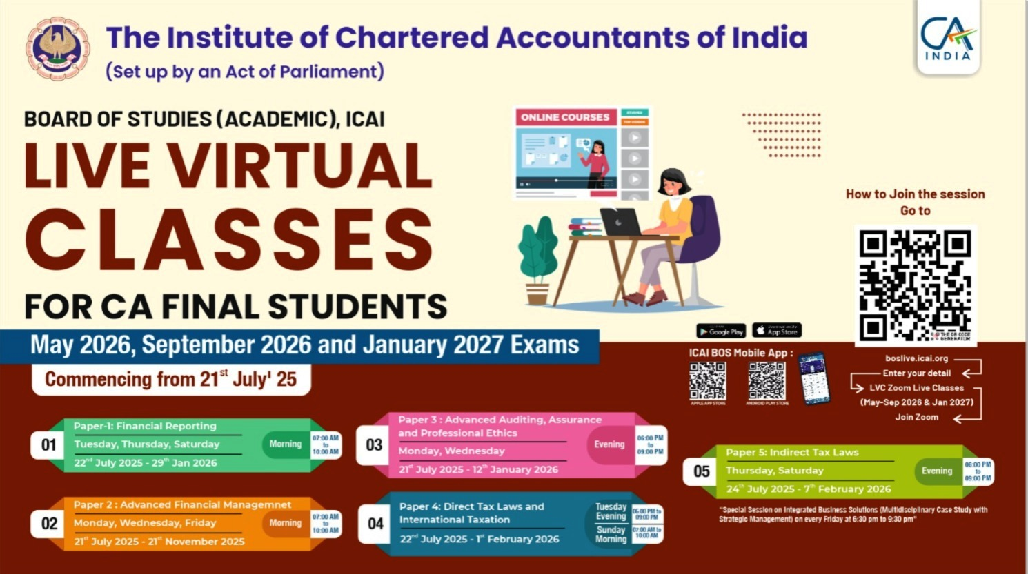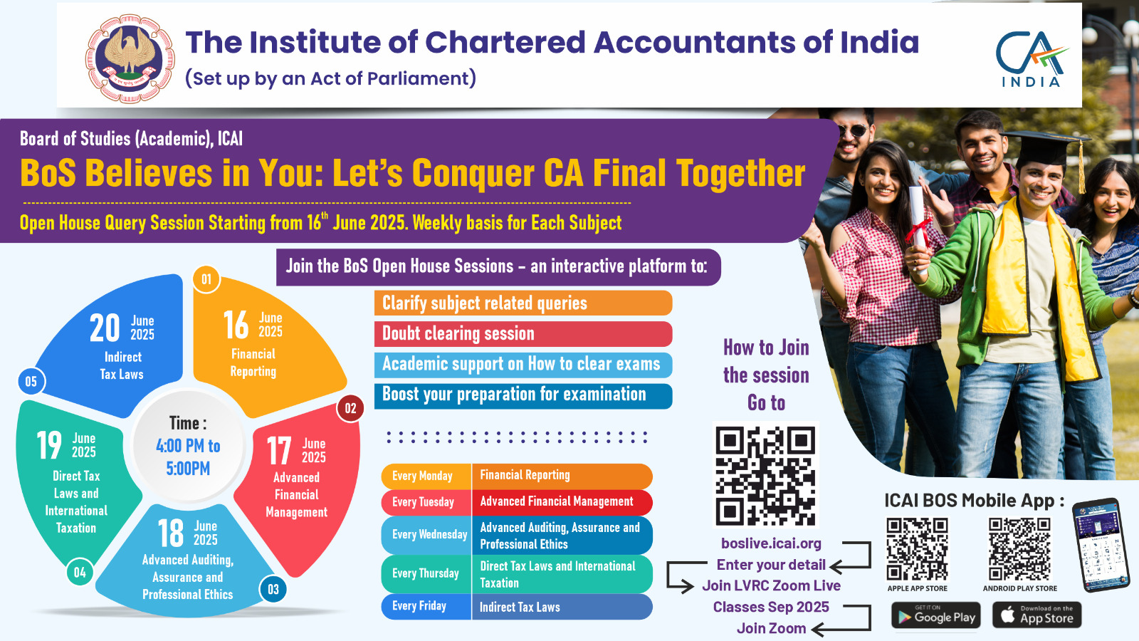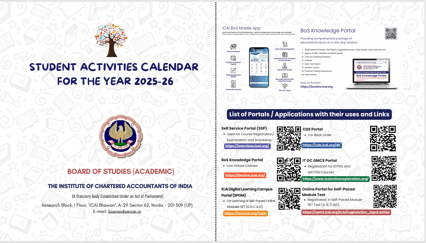 Calendar of the ICAI Board of Studies (Academic) upcoming activities for the September 2025 Examination